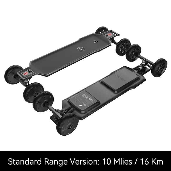 The Maxfind FF Plus, all-terrain electric skateboard, is equipped with 1200W*2 high-torque hub motors, which can deal with 35% slopes. The 165mm vacuum rubber wheels provide 4.7 inches of ground clearance to help you perfectly conquer all roads, such as slopes, gravel, dust, etc.