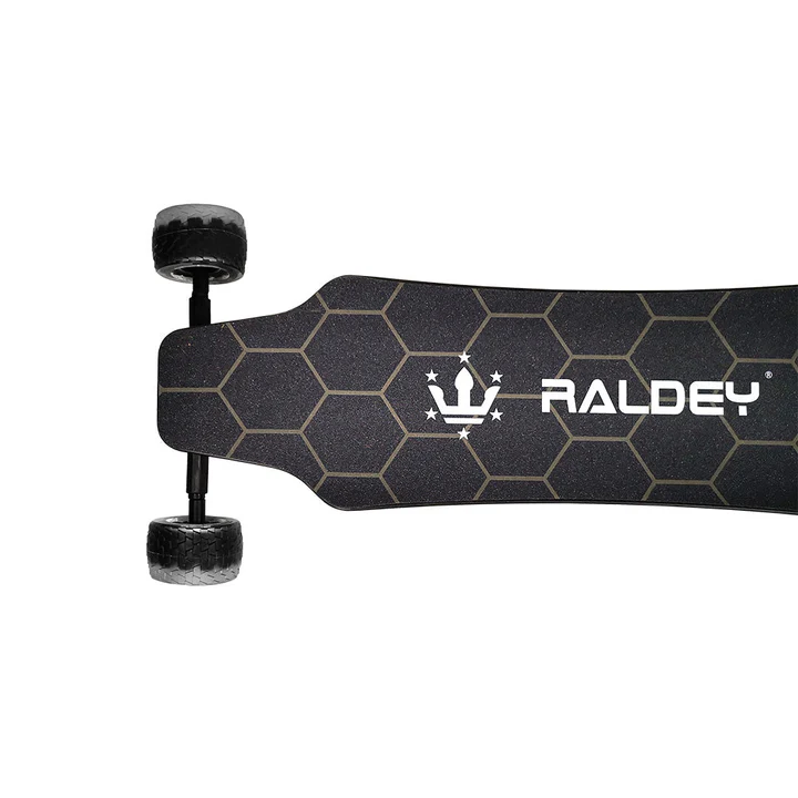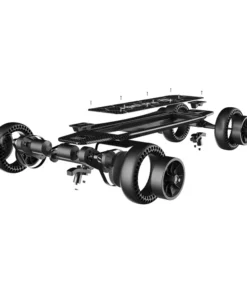 The two belt motors are now mounted behind the board. This makes the board look much more aggressive also protects the motors from diverse terrains. Our airless wheels of 165mm (6.5 inches) and 195mm (7.7 inches) are comfortable and require much less maintenance compared to traditional pneumatic wheels. Now you don’t need to worry about popping a tire while riding your favorite trails. Also, they sit on 254mm (10 inch) double kingpin trucks.